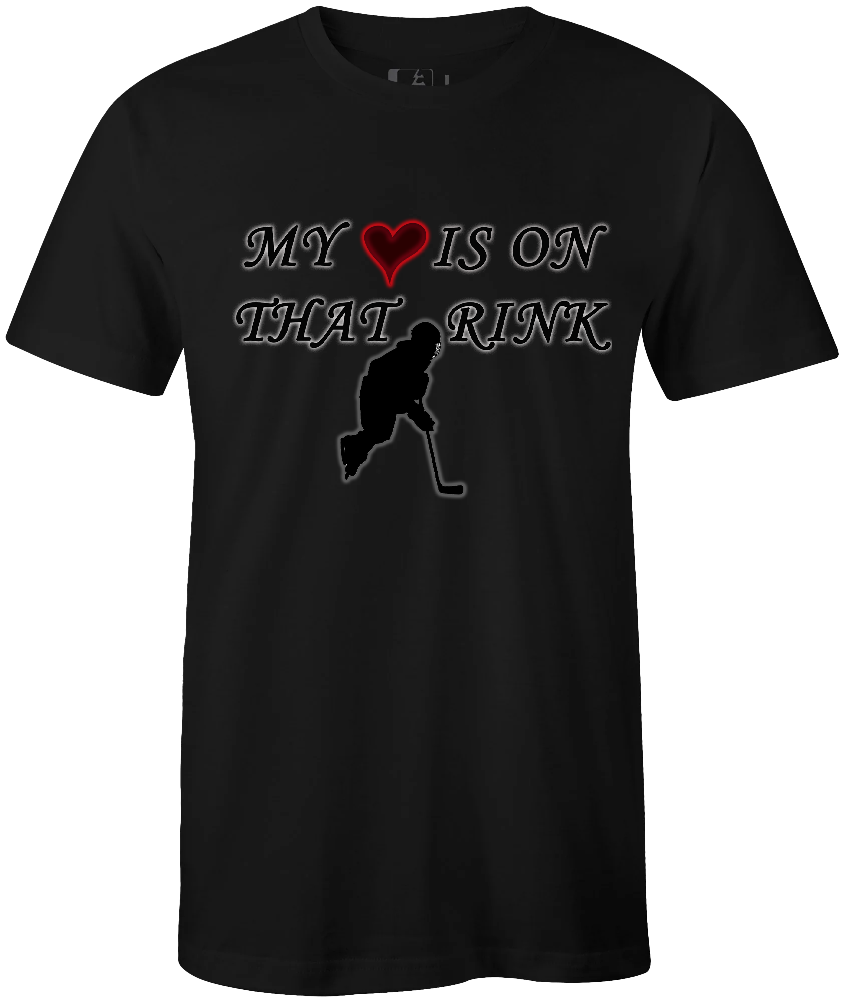 "My Heart Is On That Rink" T-Shirt is the perfect T-Shirt to showcase how much your little player means to you! A must have for every parent in the arena!